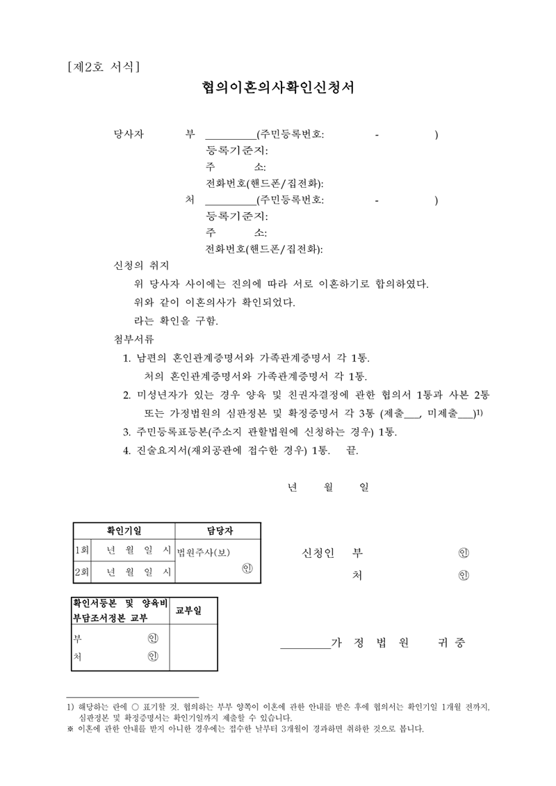 2. 협의이혼 신청서 양식