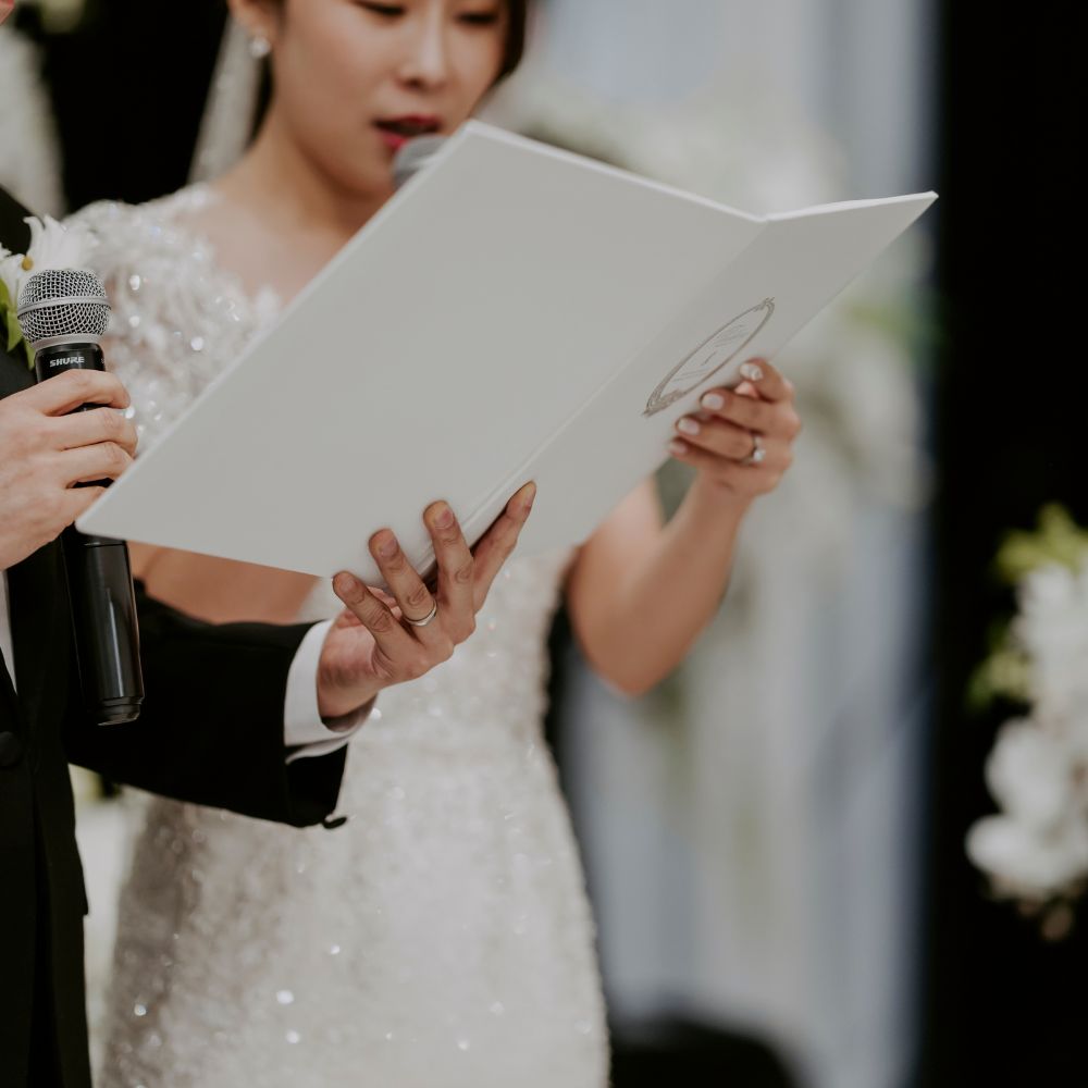 시선 처리: 서약서만 보지 말고, 중간중간 파트너의 눈을 바라보며 진심을 전하세요. 하객들을 향해 잠시 시선을 주는 것도 좋지만, 가장 중요한 것은 서로를 향한 마음을 표현하는 것이에요.